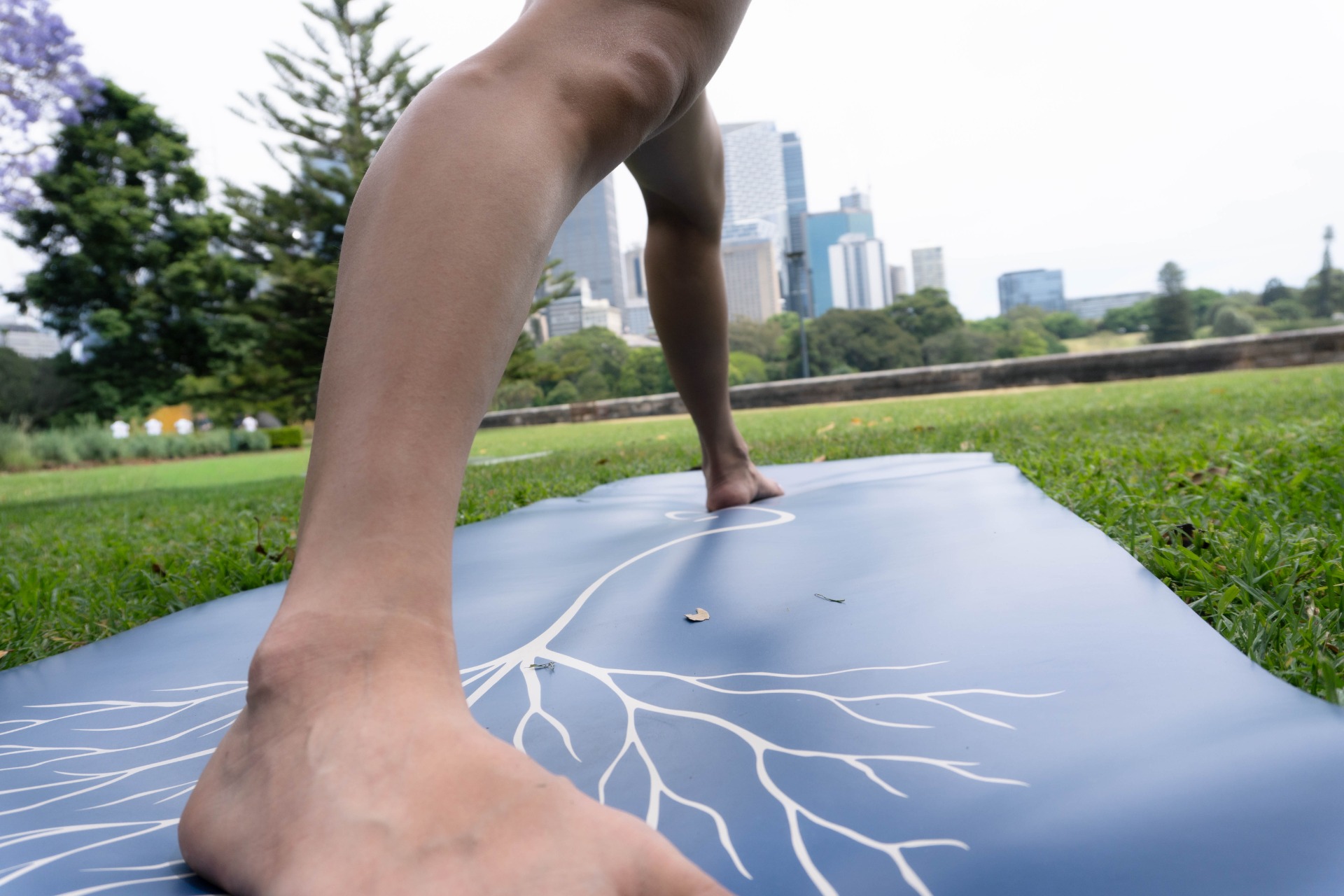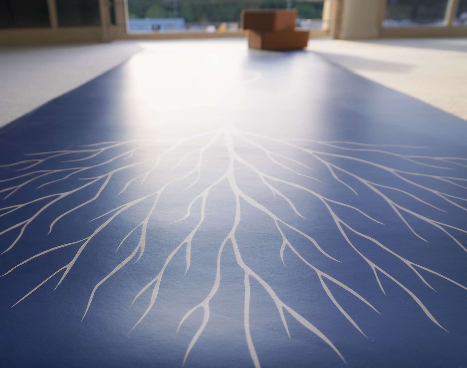 Our first line of mats carry a flowing root-line motif, a quiet reminder of yoga's essence: to be both grounded and free. The lines are inspired by the natural world, echoing the pathways of rivers and the hidden strength of roots beneath the earth.