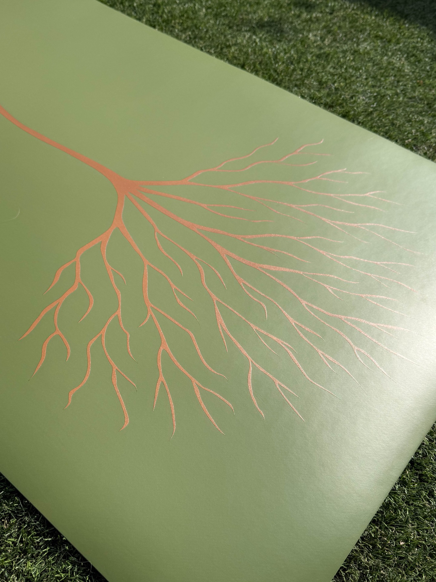 Alive and abundant. This muted green recalls the canopy of the rainforest: steady, resilient, and deeply connected to the natural world. A mat for growth and vitality.