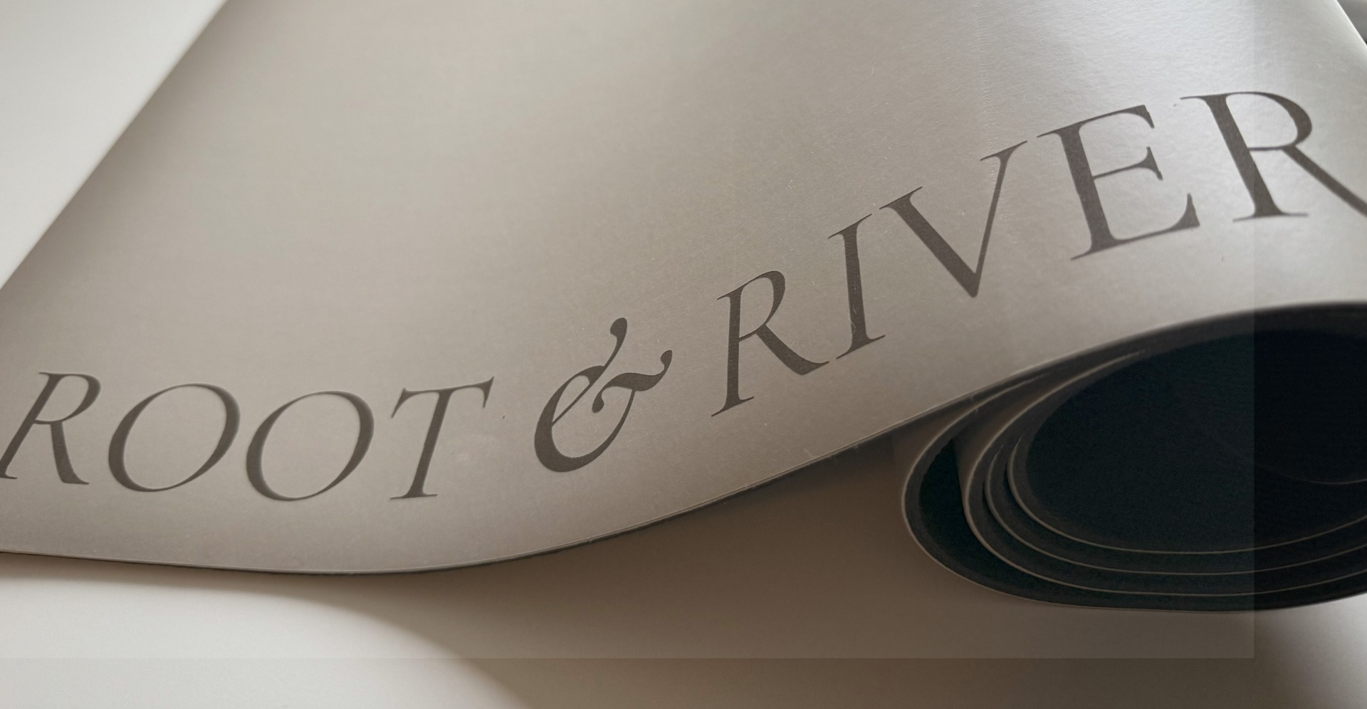 A mat of quiet purity. Inspired by the sacred river, its soft ivory base evokes clarity and renewal. Grounded yet fluid, it invites calm presence and a sense of spacious breath.